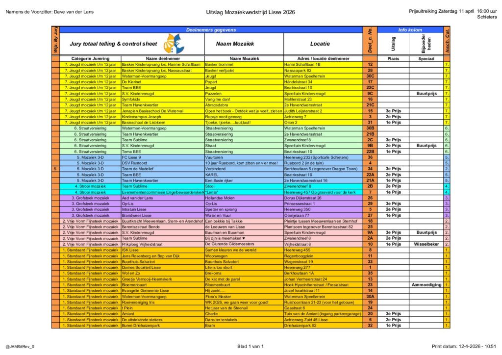 Tijdens de 14e editie van dit kleurrijke evenement, dat plaatsvond op 11 en 12 april 2026, stonden in heel Lisse weer de prachtigste bloemenmozaïeken centraal. Buurtverenigingen, scholen, ondernemers en inwoners hebben opnieuw laten zien hoeveel creativiteit, passie en saamhorigheid er in Lisse leeft. Het moment is daar om de makers van deze bijzondere kunstwerken in het zonnetje te zetten en de winnaars van 2026 bekend te maken.